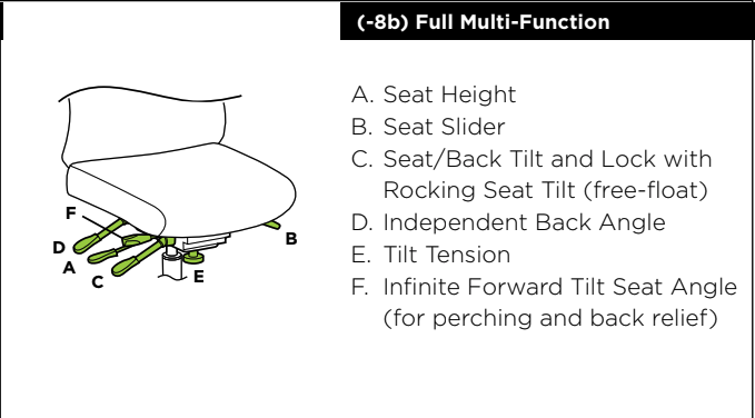 Dimension | Arm Model | Type | Features | Min Height (approx. from seat pan) | Max Height (approx. from seat pan) |