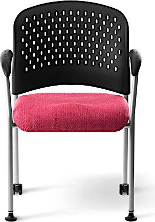 The OfficeMaster SG2K Stackable Guest Chair has a unique glide/caster combination that allows for both mobility and stability in the same great chair. In addition to that, a cushioned waterfall seat and perforated back design combine for a modern look on this comfortable chair. Cushioned Seat, perforated black plastic back, neo-classic arm design, rear casters and front glides Floor Stack: 4